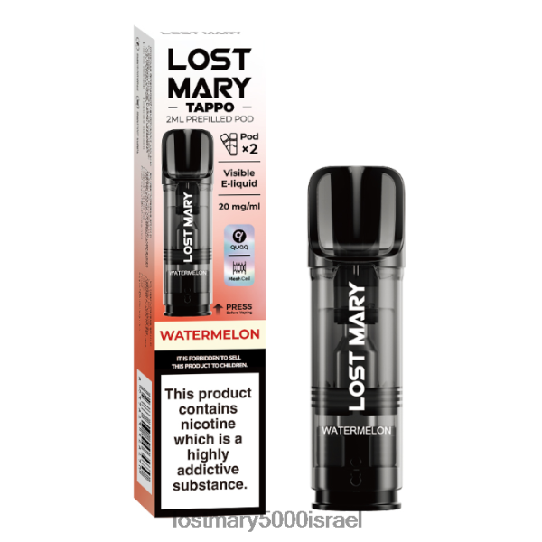 התרמילים בטעם אבטיח בטעם אבטיח אבוד עוצבו לשימוש עם הערכת תרמילים במילוי מראש של מרי טפו. תרמילים אלה מלאים עד 2 מ”ל של נוזל אלקטרוני של מלח nic 20mg, עם מגוון של 15 טעמים שונים לבחירה. כל תרמיל מספק עד 600 שאיפות ומספק מכה חלקה בגרון, אידיאלי לאידוי mtl (פה לריאה). מעוצבים עם סלילי ה-quaq mesh העדכניים ביותר, הם מציעים טעם מעולה לכל אורכו.