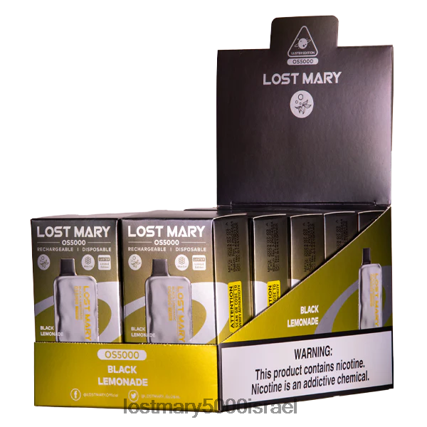 טעם: טעמי פטל שחור בשלים משלימים בצורה מושלמת את טעם הלימונדה החמוצה המתוקה והטרי ב-Limonade Black Lost Mary os5000 vape.