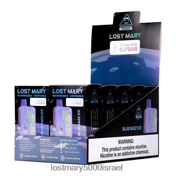 טעם: הקרח הכחול razz lost mary os5000 משלב razz כחול בהשראת קונדיטוריה עם מנטול קריר בנשיפה.