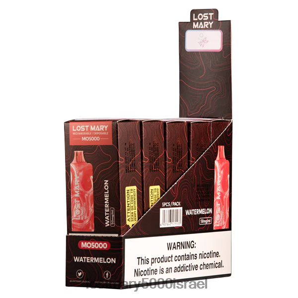 האבטיח האבוד מרי mo5000 vape משתמש בסליל רשת פרימיום ובחומרי טעם עסיסיים ועסיסיים של אבטיח, בשילוב עם נשיפה מנטה טרייה כדי לספק חווית vape אדירה.